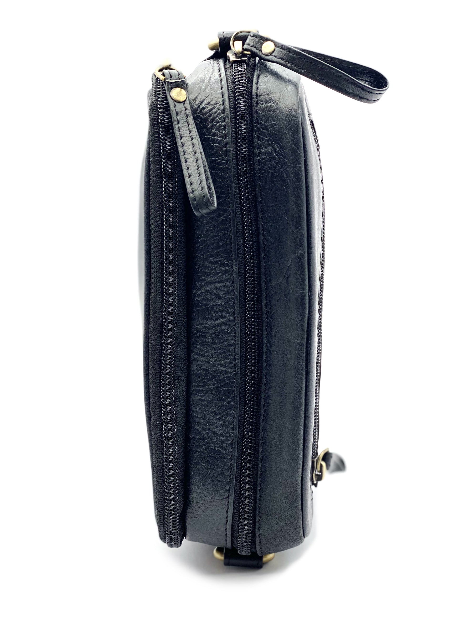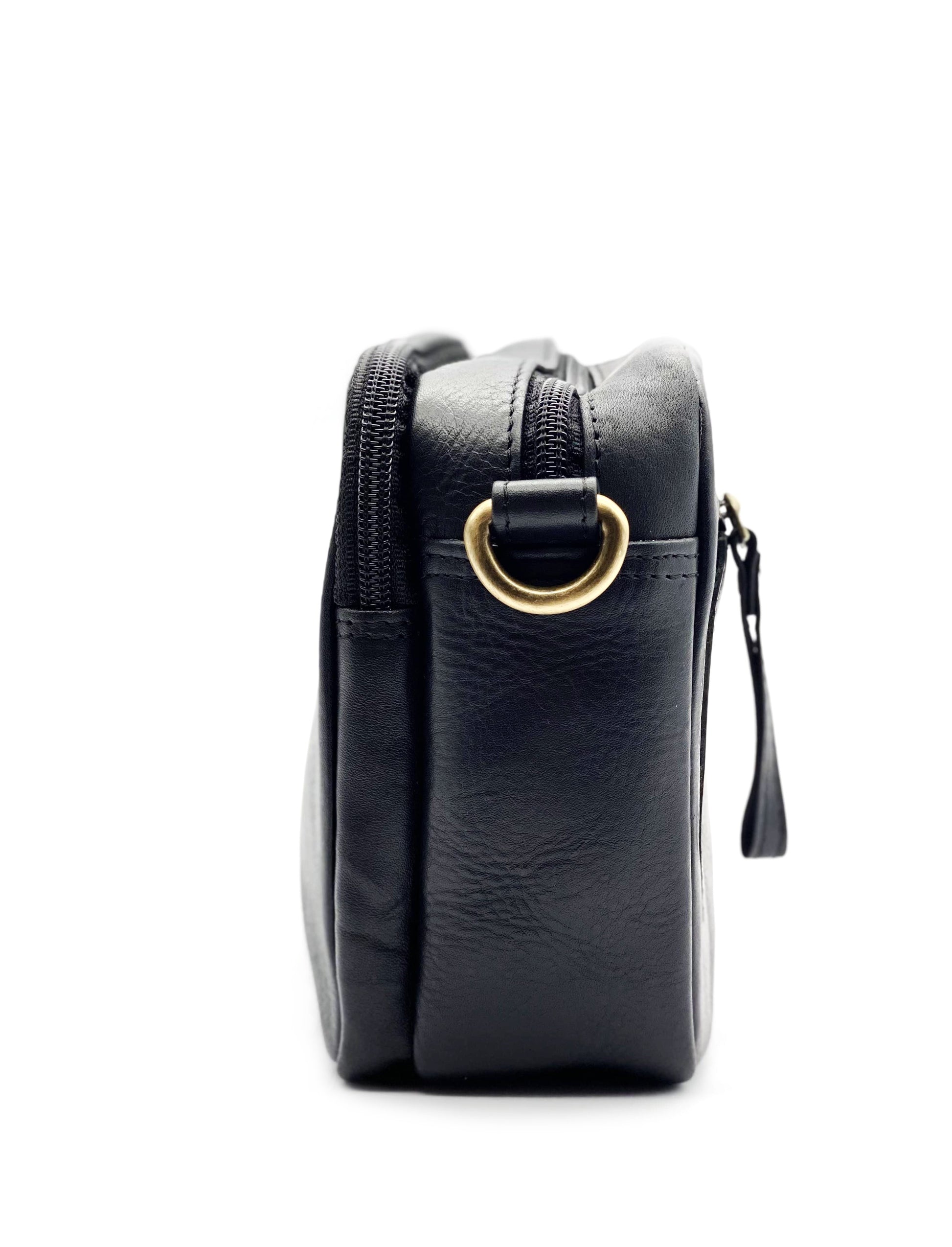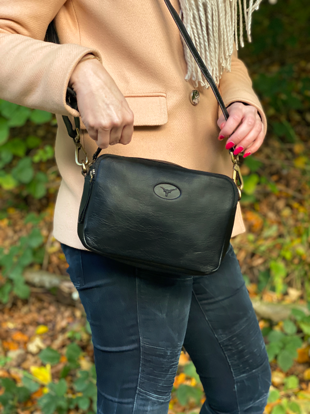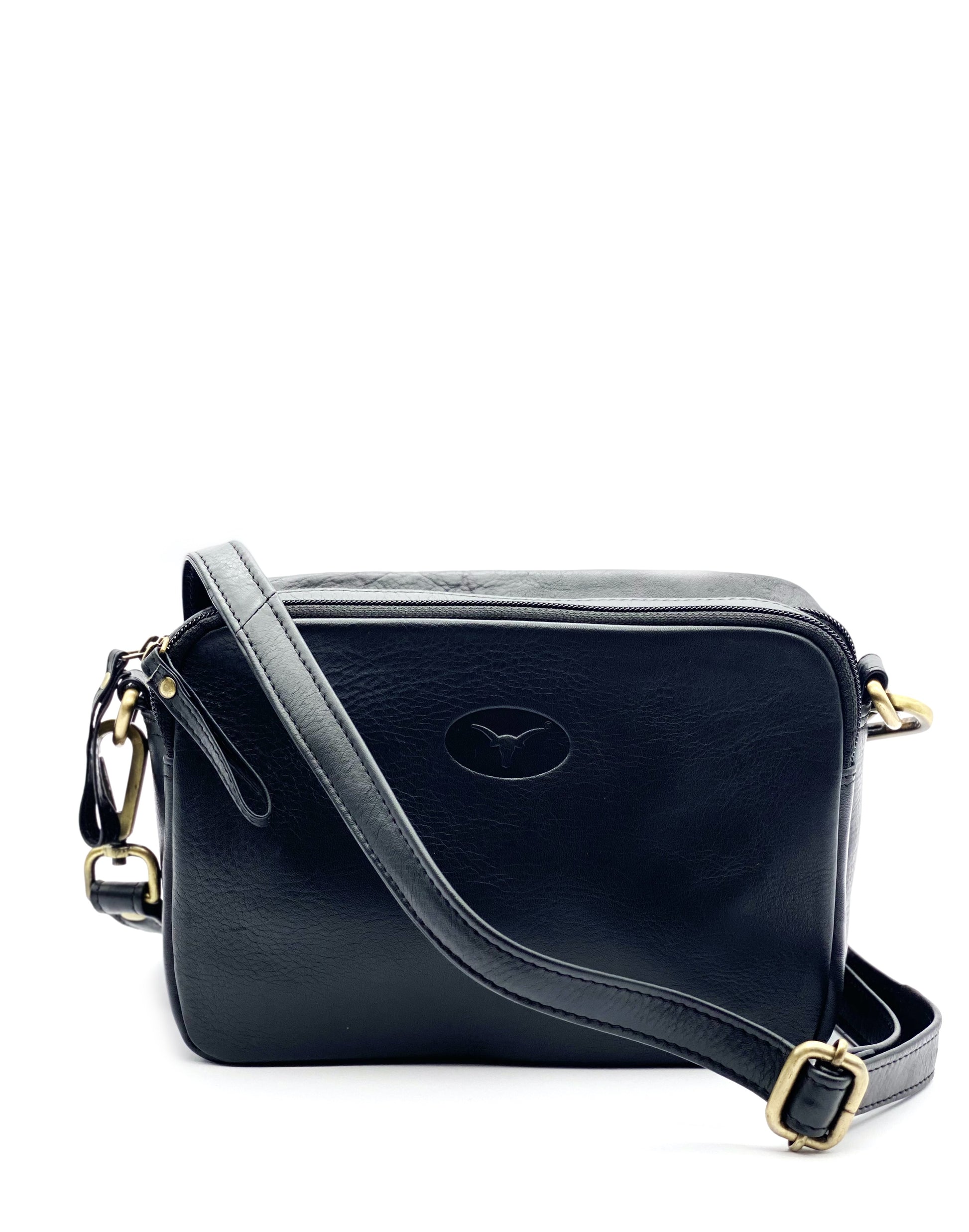 Diese elegante und klassische Alltagstasche ist aus Rindsleder gefertigt und eignet sich sowohl für alltägliche praktische Aufgaben als auch für den feineren Gebrauch. Die Tasche hat oben zwei Taschen, wobei im ersten Fach ein Kreditkartenhalter für 3 Karten integriert ist. Das zweite Fach verfügt auf jeder Seite über zwei Seitentaschen, davon eine als Reißverschlussfach. Auf der Rückseite verfügt die Tasche über ein weiteres Reißverschlussfach. Die Tasche wird mit einem langen verstellbaren Schultergurt geliefert, der ebenfalls aus Rindsleder besteht.