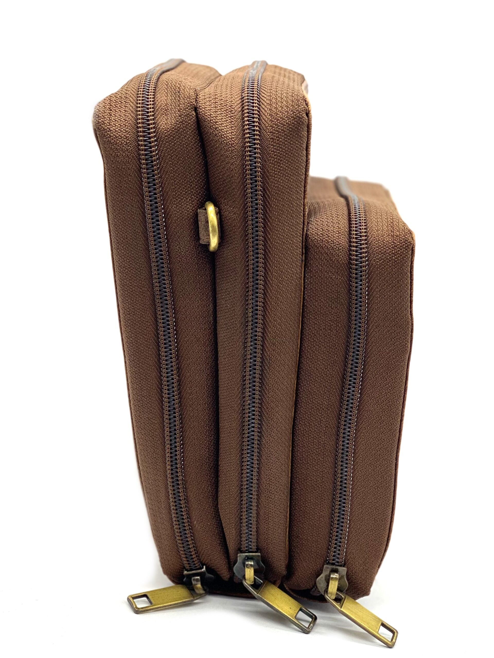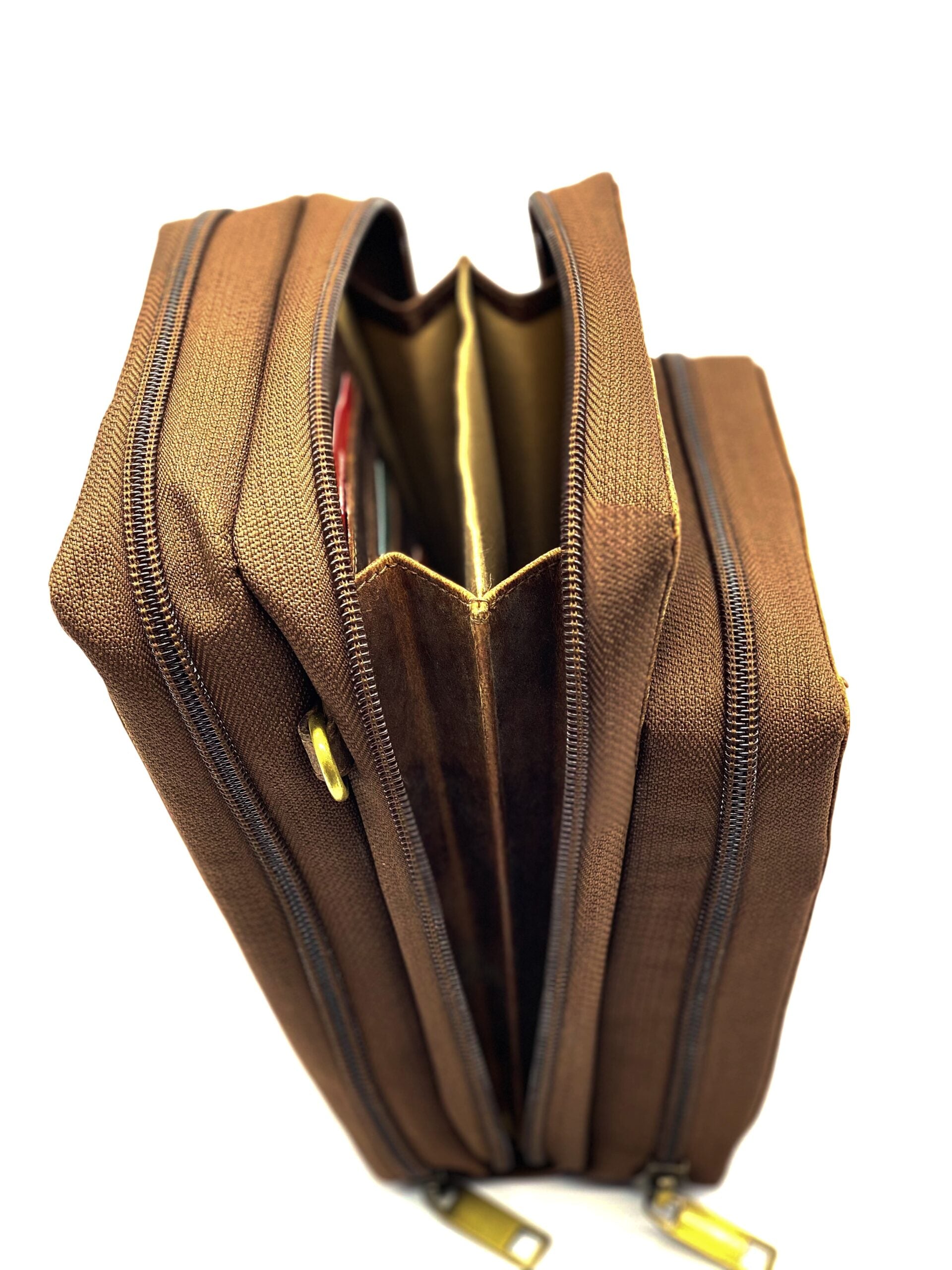 Tasken har to store rum, samt et mindre rum forest. Alle er med bred lynlås. De to store rum er opdelt i to mindre rum, som giver overblik, dette kan ses på billederne ovenfor. Her finder man kortholder i begge rum med plads til mindst 5 kort i hver.