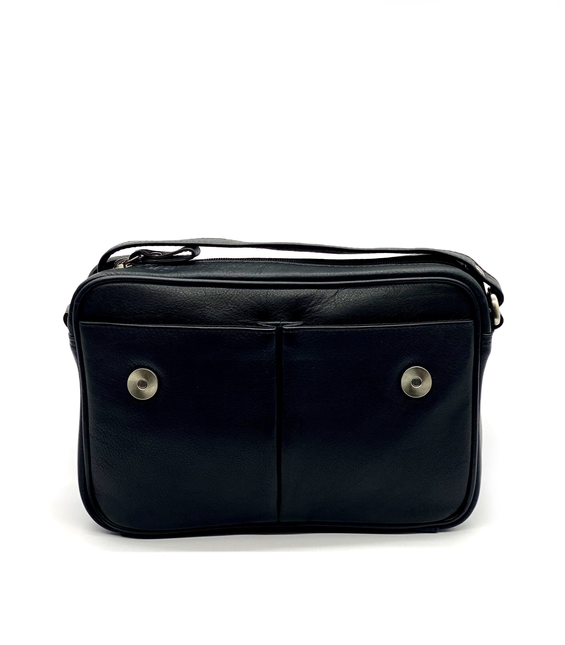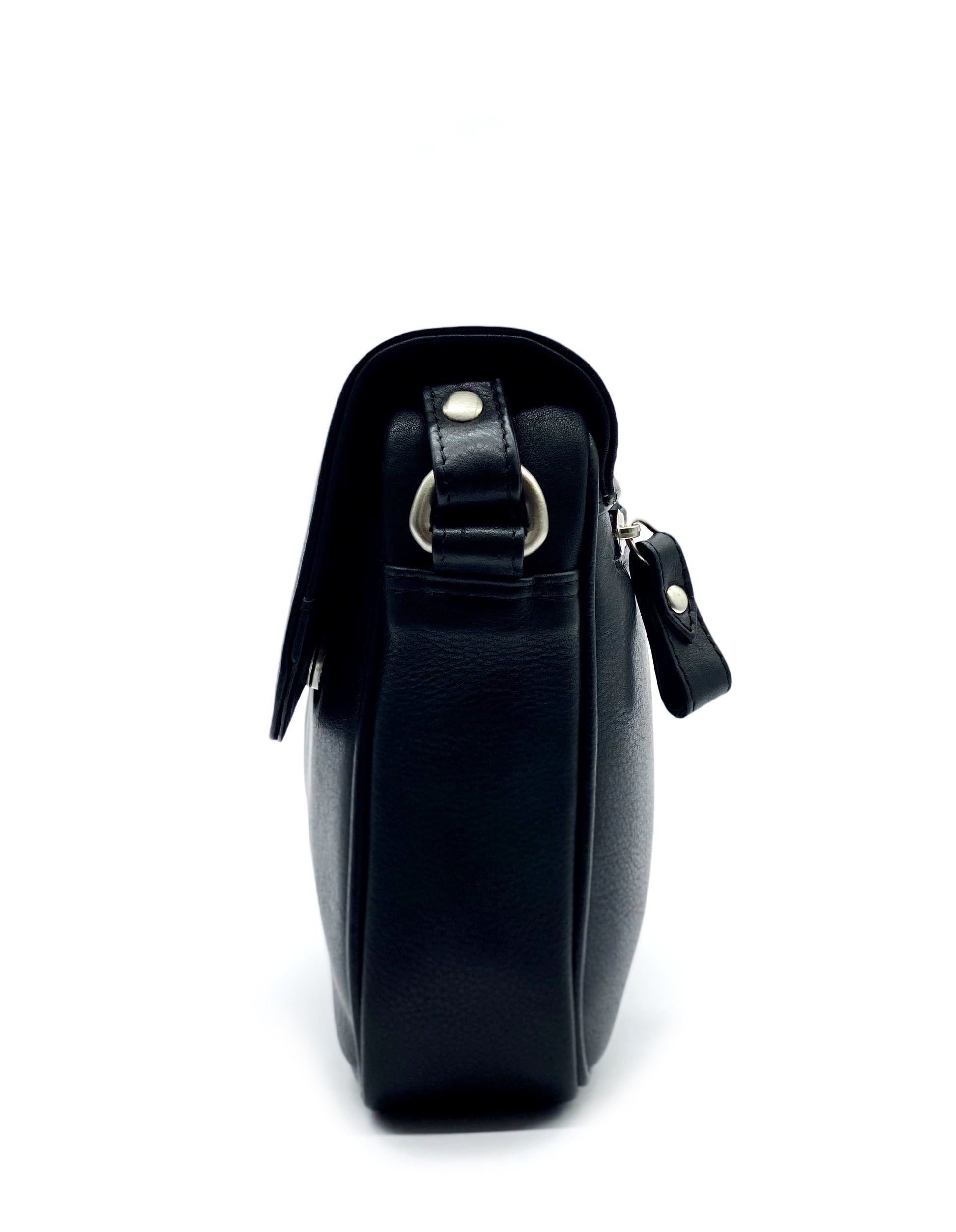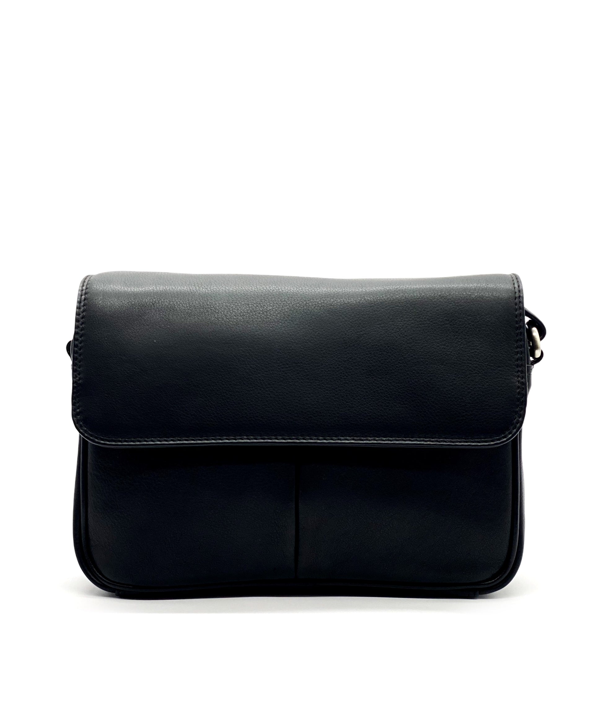 Denne super lækre crossbody/skuldertaske, er udført i super blødt kalveskind. Tasken er perfekt til hverdagen, byvandringen og ferien. Tasken har udvendig en baglomme. Åbner man klappen ser man yderst to åbne forsommer til b.la. indkøbsnet mm. Øverst ser man den store lynlåslomme som giver adgang til taskens store rum Her finder man en lille åben lomme til eksempelvis mobilen, samt en lynlåslomme på den modsatte side.