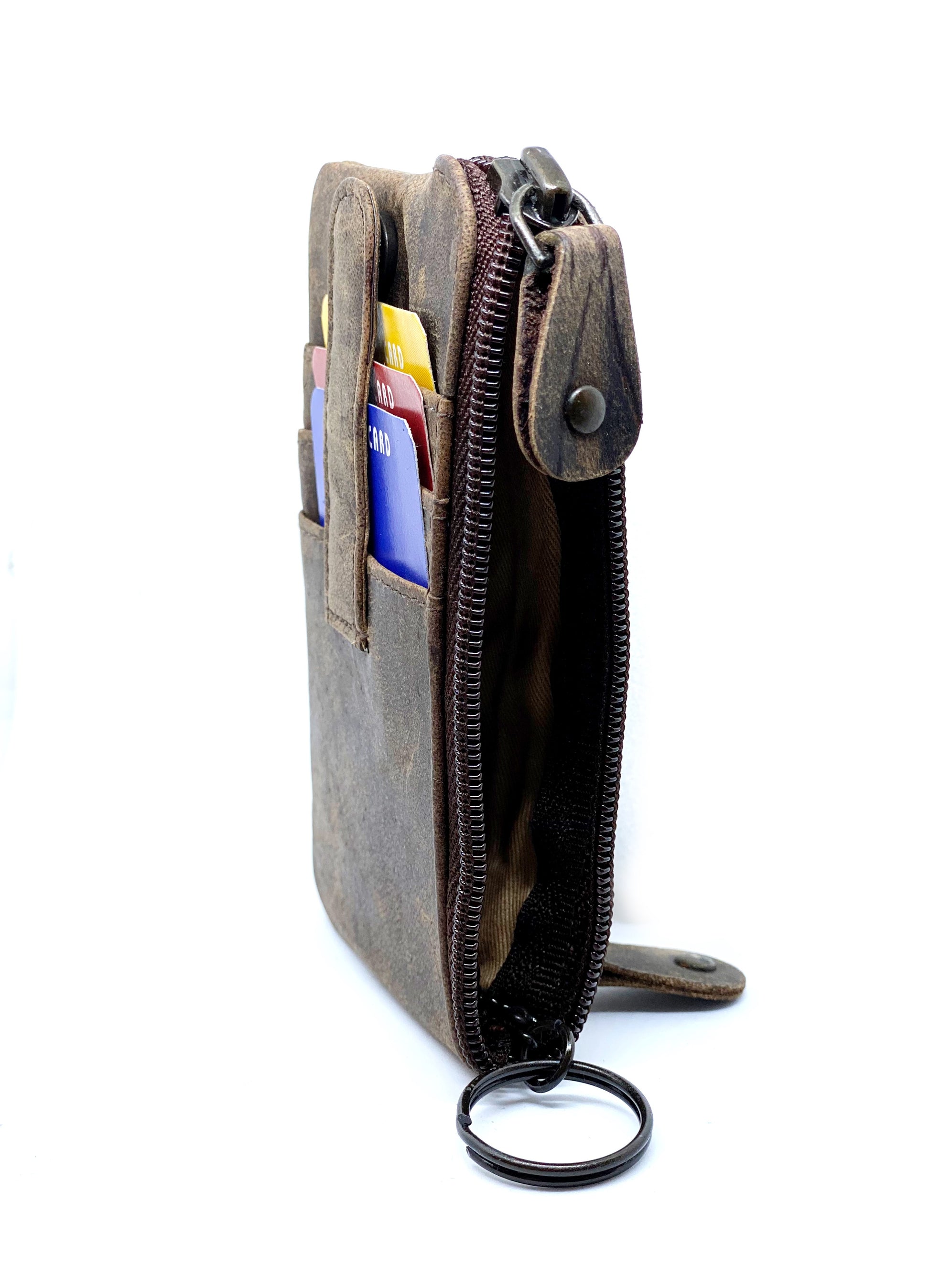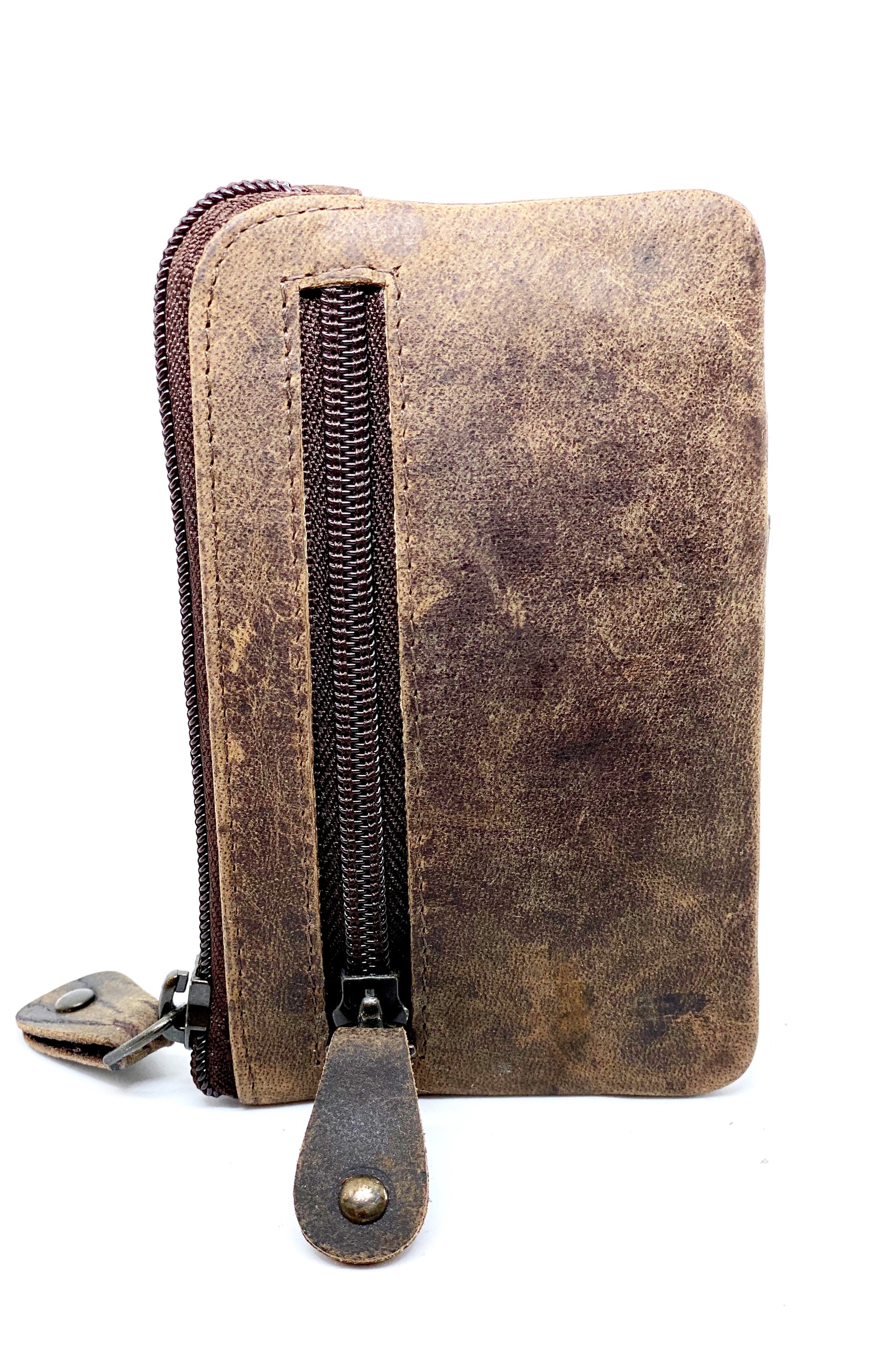 Super lækker og kompakt bøffelskind. Pungen har plads til mindst 3 kort, har en større lynlåslomme i midten til nøgler eller andet. Ydermere, har pungen en mindre lynlåslomme bagpå.