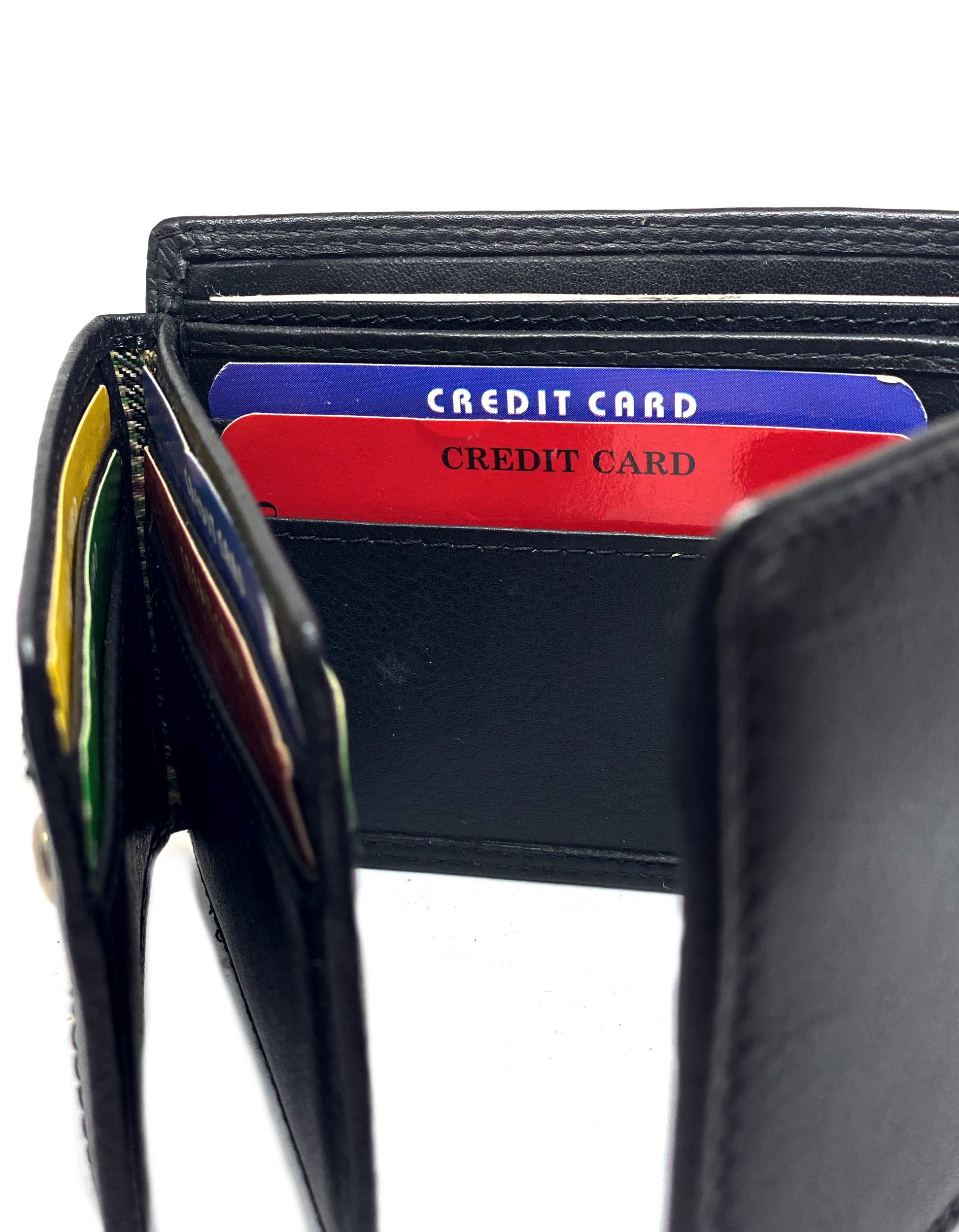 Super lækker herrepung udført i kalveskind. Pungen har plads til mindst 9 kort og har ydermere et vindue til eventuelle billeder eller kørekort(nyt).