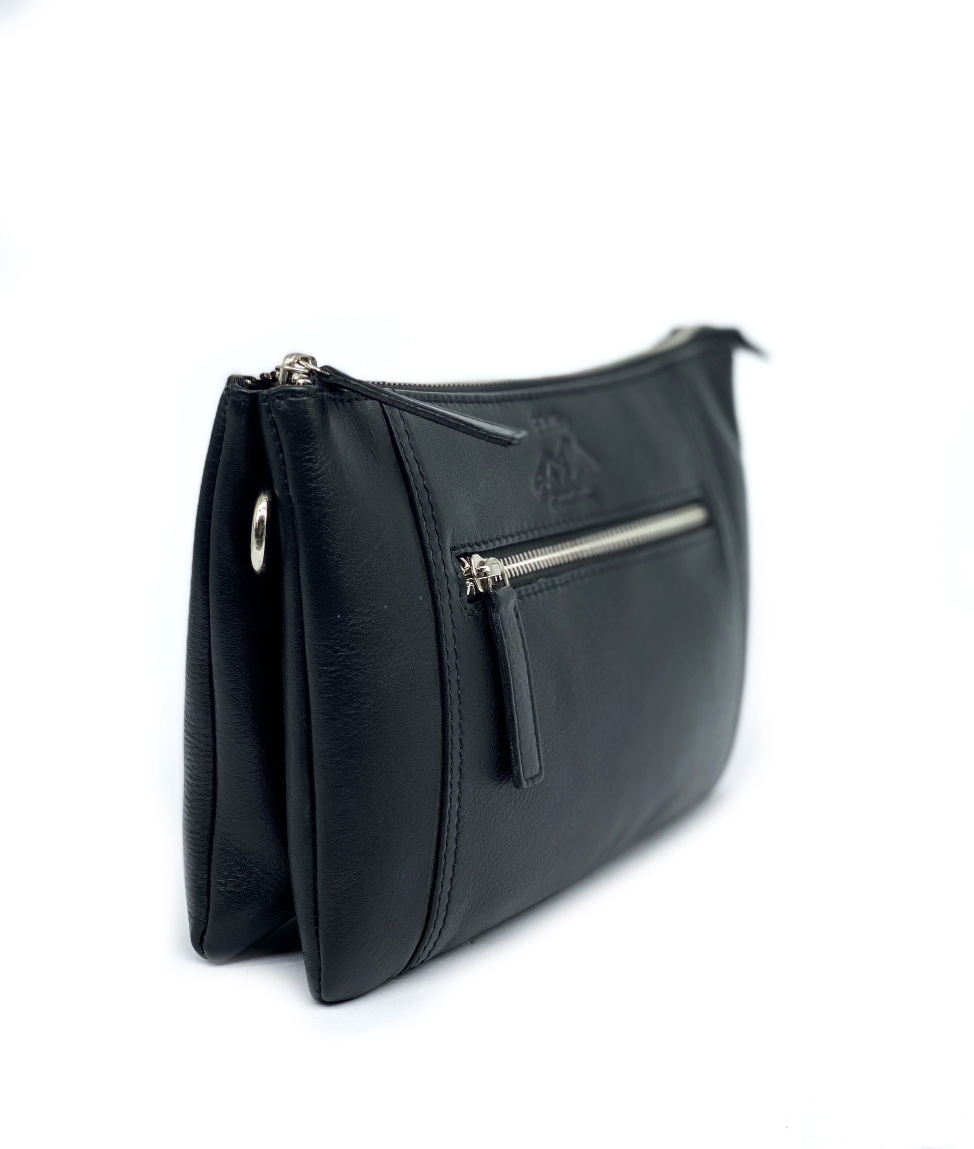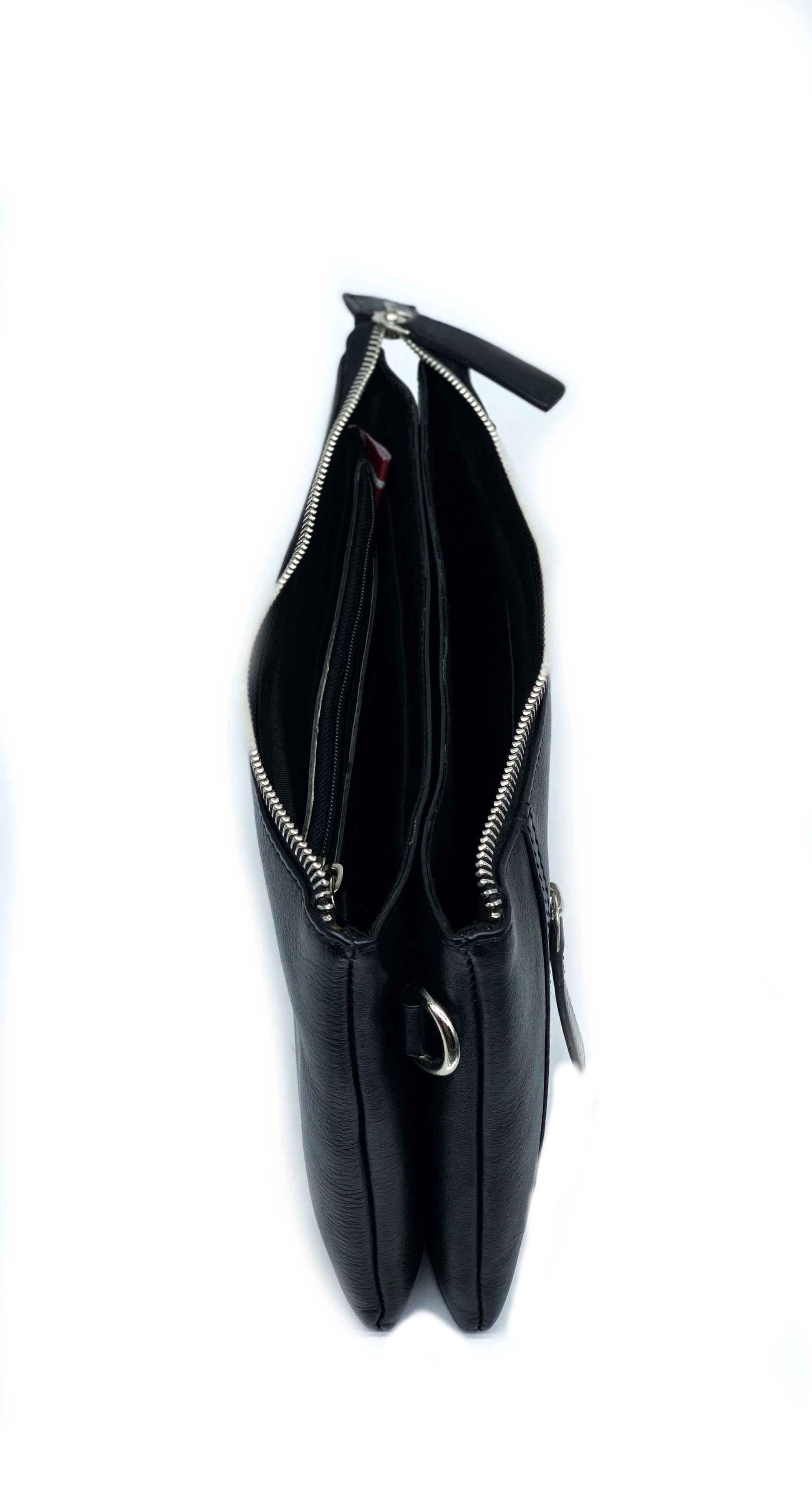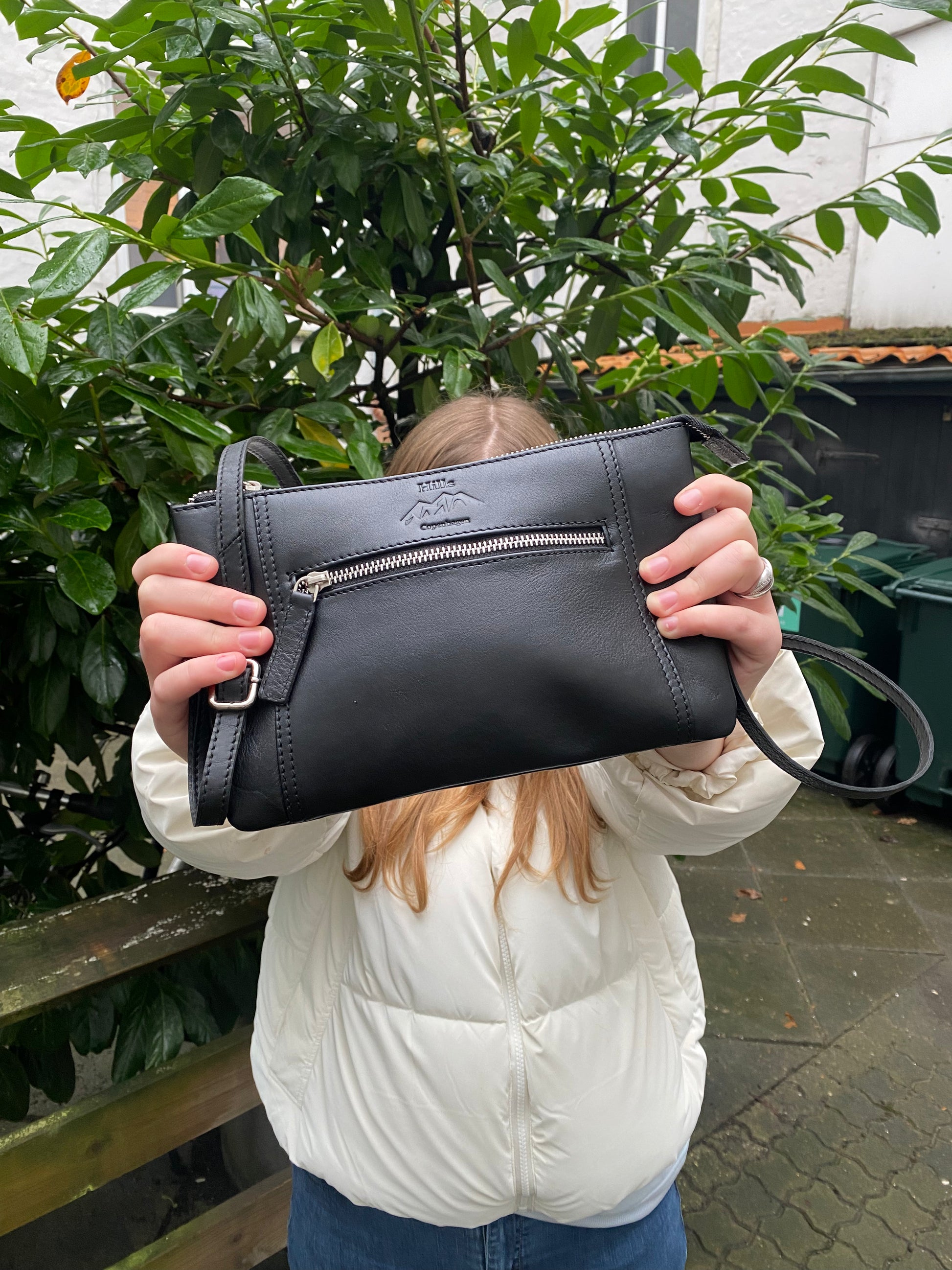 Denne crossbody er udført i kalveskin og kan bruges til hverdagen og formel brug. Tasken har en aftagelig skulderrem, som kan justeres. Remmen er udført i kalveskin. Tasken er inddelt i to rum. I det ene rum finder man en lynlås lomme, samt andre sidelommer. Bagpå har tasken to mindre lynlås lommer, som findes på hver af sin side.
