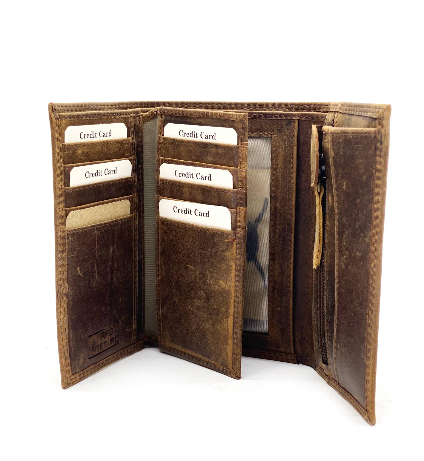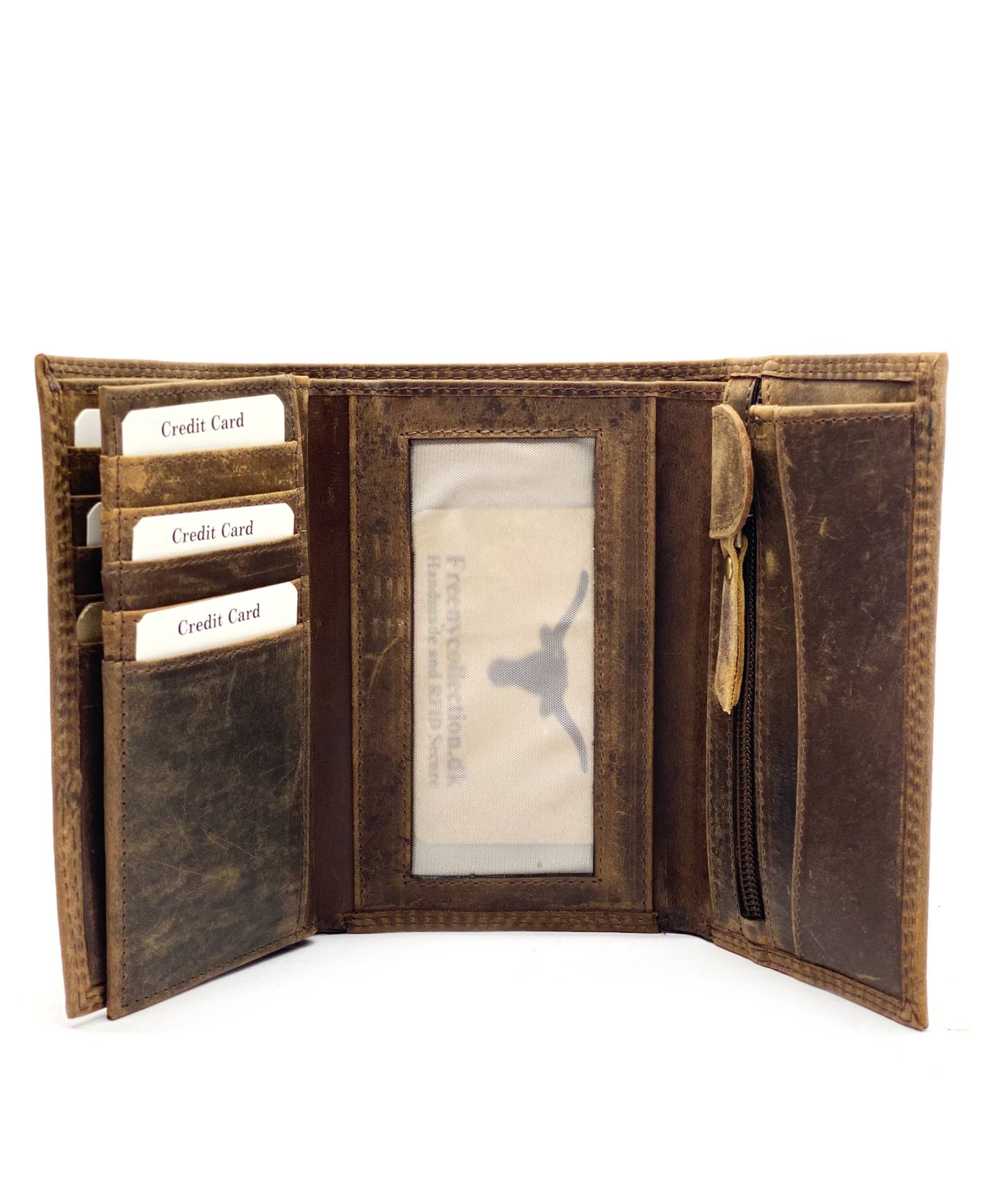 Denne super lækre og kompakte RFID sikrede tegnebog har plads til hele 15 kreditkort. Dertil har pungen et eventuelt kørekort vindue, to rum til sedler samt en møntlomme med lynlås. Denne pung er RFID sikret, og er derfor udstyret med en folie, der forhindre uvedkommende i at aflæse dine personlige data.