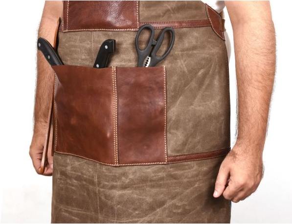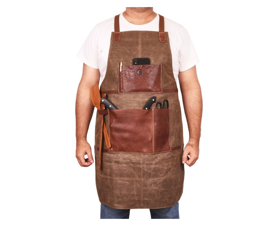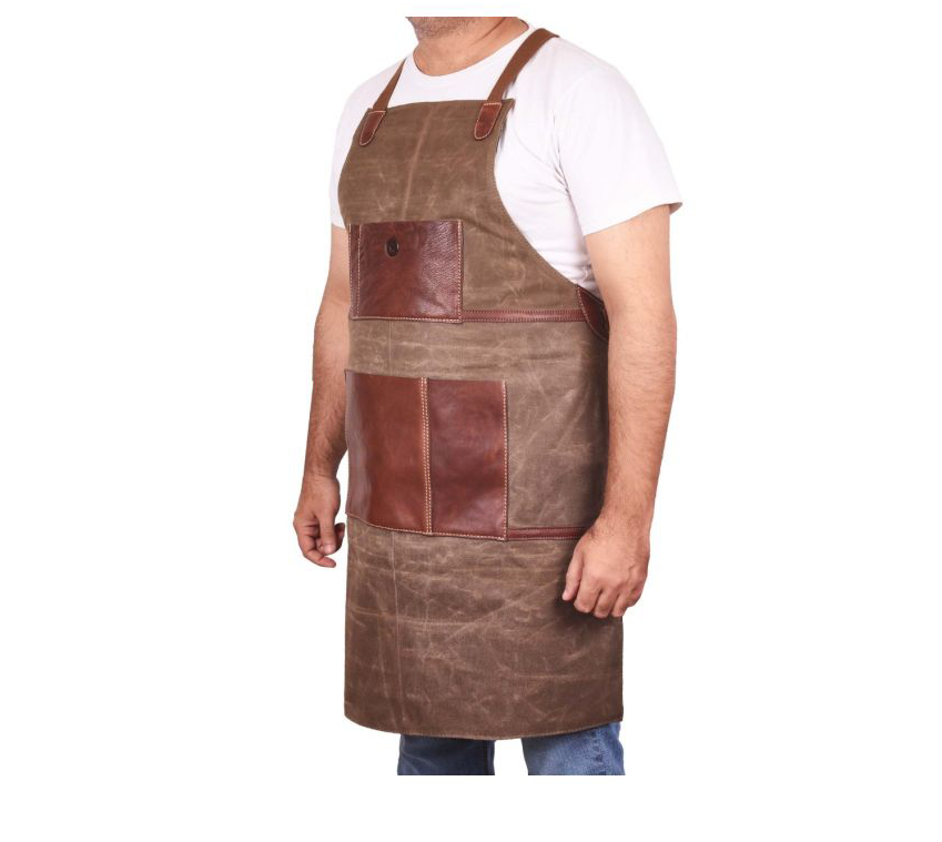 The Leon Waxed Canvas Apron from Aaron Leather Goods is a One Size Fits utility Apron which has a diversified appeal from Chef's to Metal Forgers to Construction Workers to Home Cooking to Utility Workers. Ever wondered what reinforced stitching, high density water repellent waxed canvas, cross back straps and a personified design can do for the end product.
