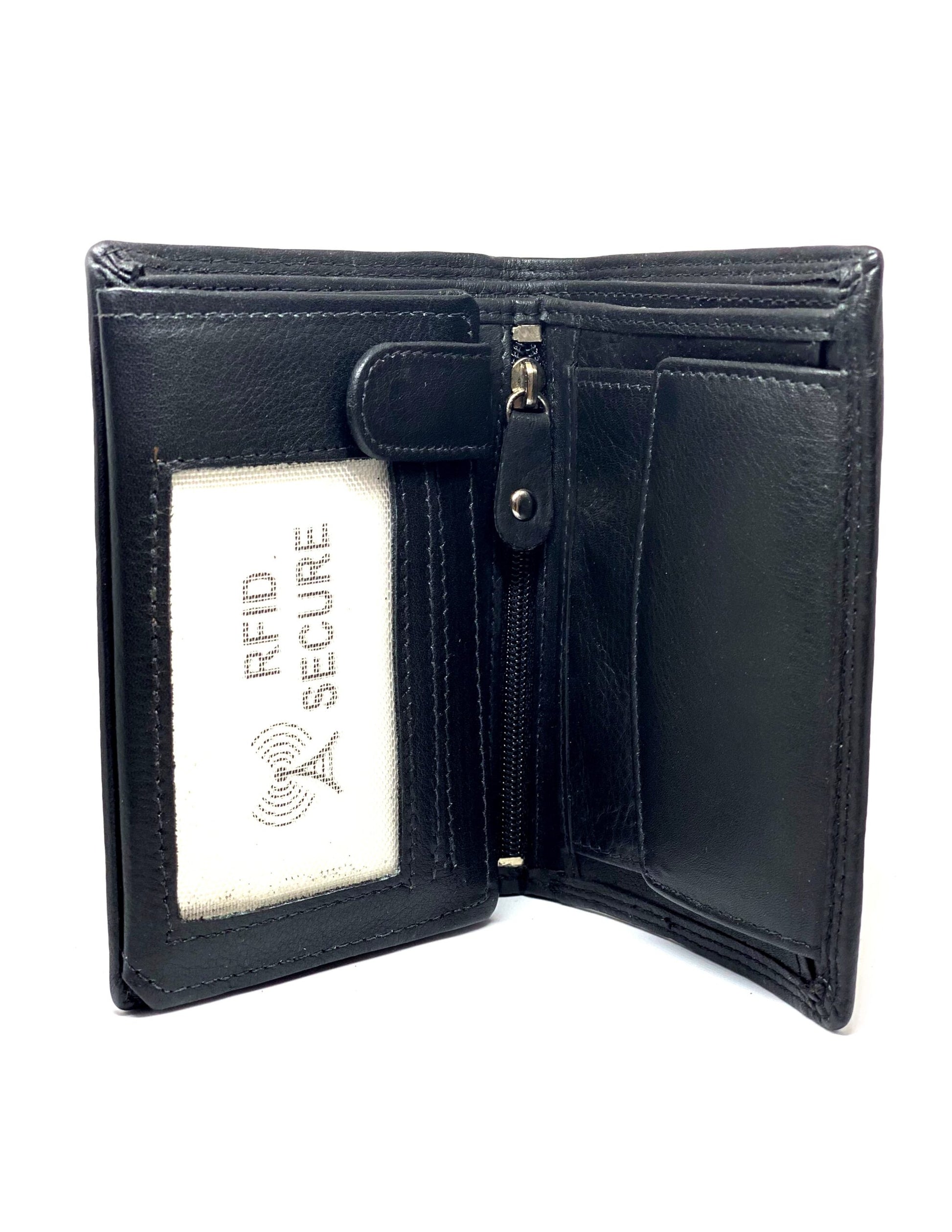 Denne pung er RFID sikret, og er derfor udstyret med en folie, der forhindre uvedkommende i at aflæse dine personlige data.