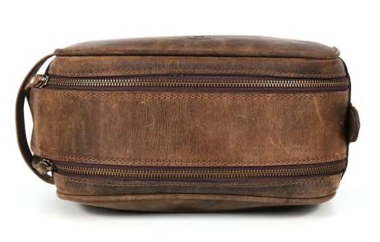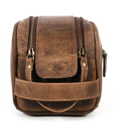 - Denne toilettaske er en unik blanding af premium læder og højkvalitetssømme for at sikre holdbarhed og langvarig brug. Den anvendte hardware er korrosionsfri og giver en vintage look.