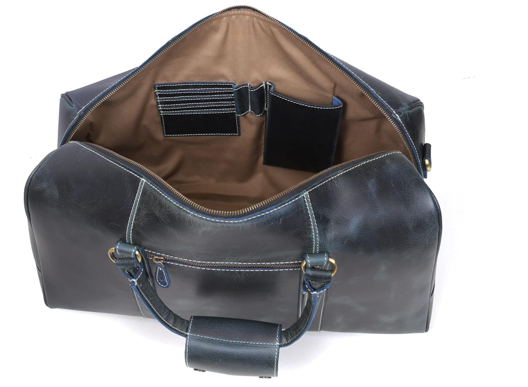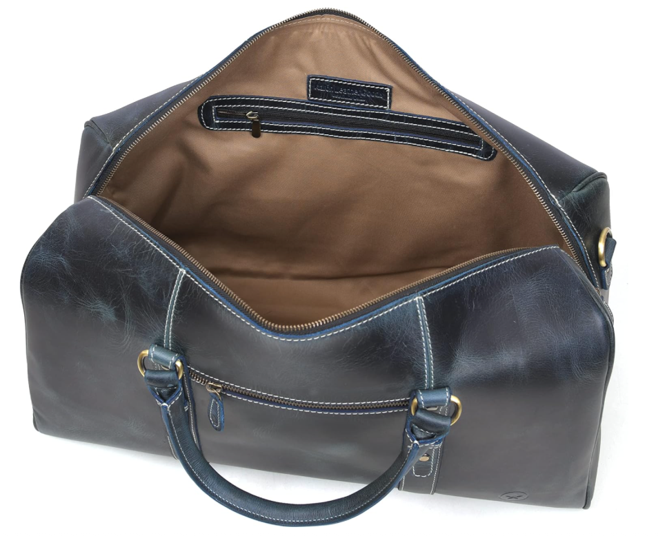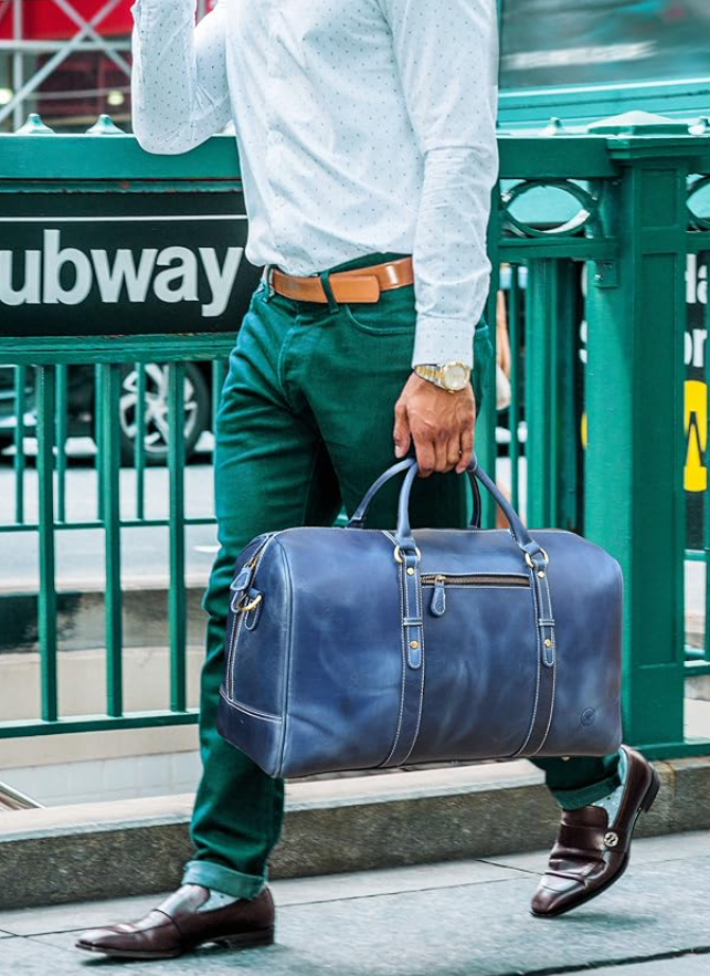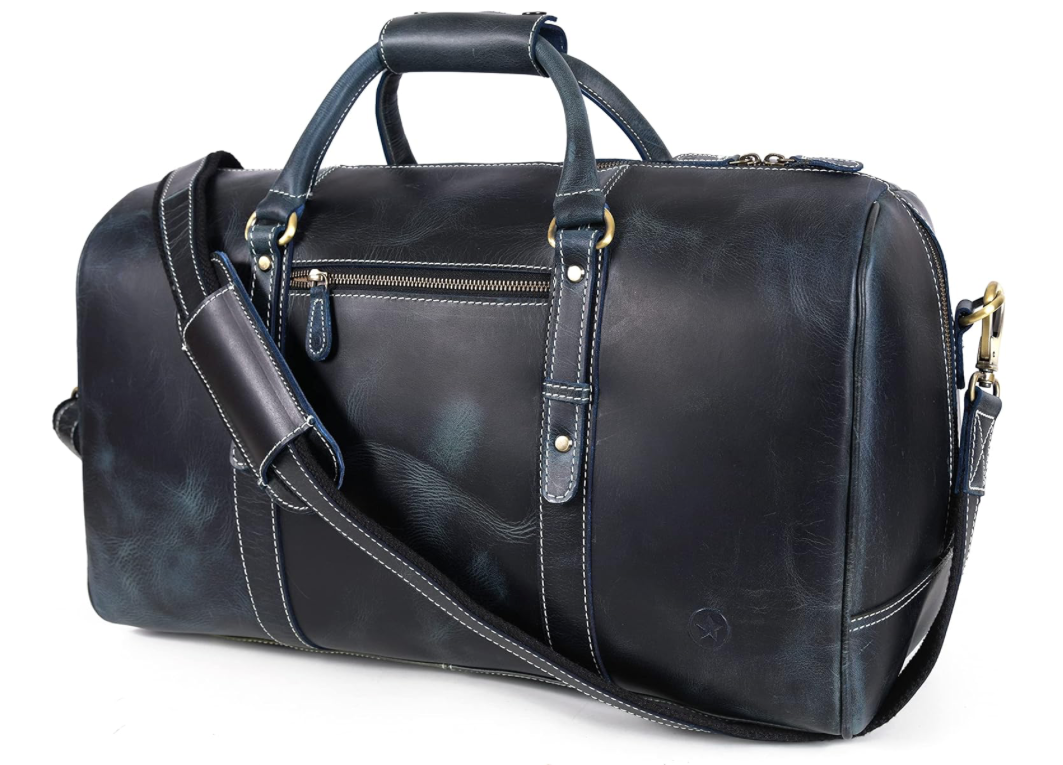 - Stitched by world-class craftsmen, the Aaron Leather Travel Duffle Bag is handcrafted with premium quality Buffalo leather. This duffle bag has a classy and vintage look with strong and reliable interiors.