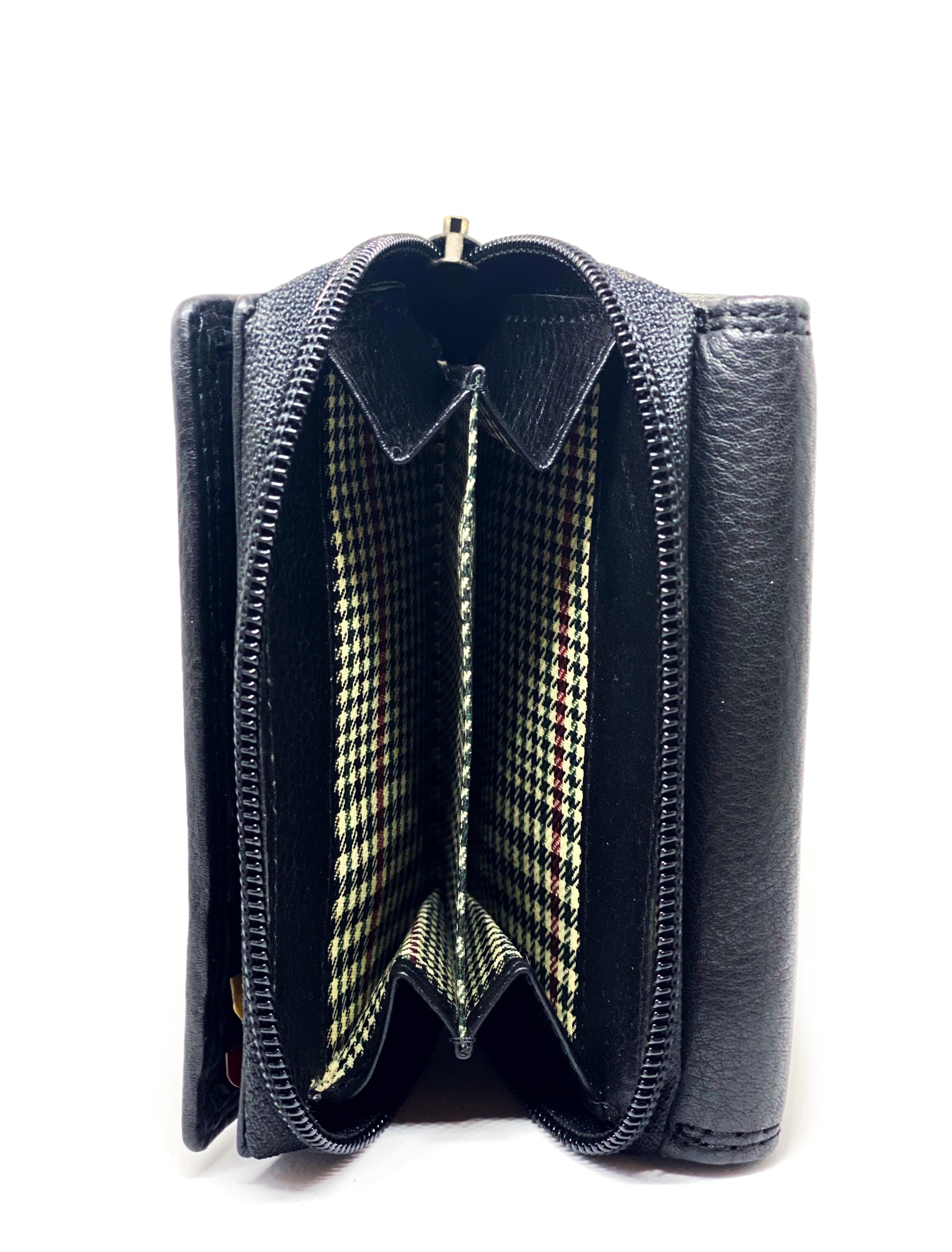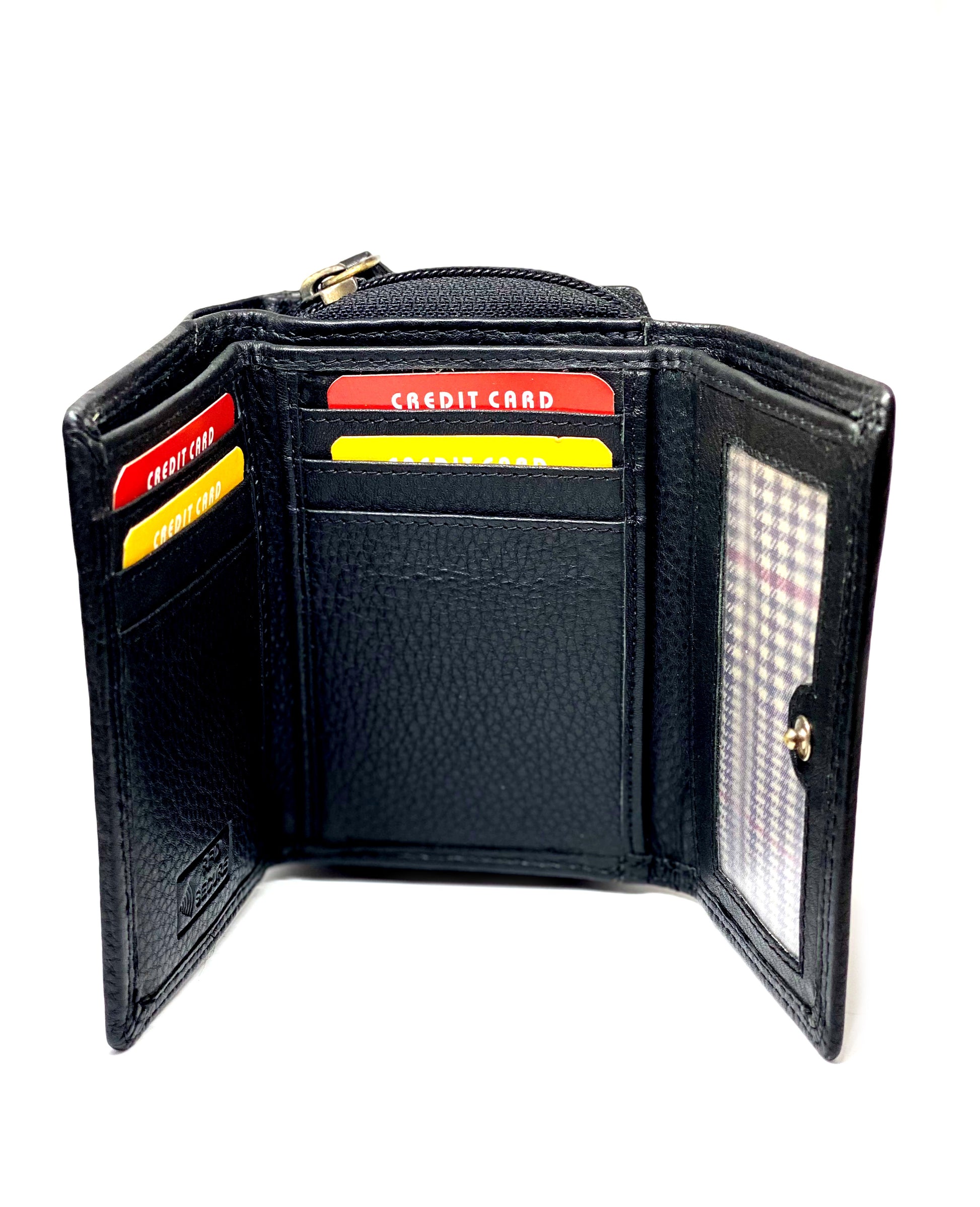Når pungen åbnes gives der adgang et til klassiske tre fold stil med plads til hhv 3 kort i venstre side samt 3 kort i midten. Til højre ses der et vindue til eventuelle billeder eller kørekort(nyt). Foroven finder man seddelrummet hvor rummet er delt i to. Pungen har dertil et møntrum som lukkes af med lynlås. Møntrummet er delt i to. Bagerst i pungen er der plads til 3 kort og her findes et yderligere vindue til billeder eller kørekort(nyt)