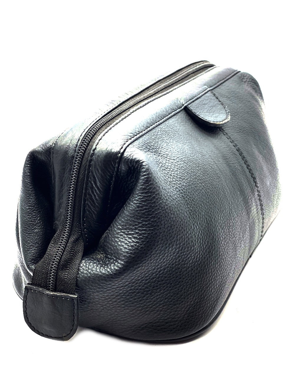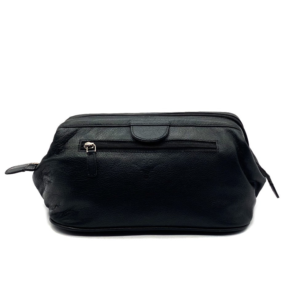 Super lækker toilettaske udført i kalveskind. Åbnes toilettasken ses det at der er et stort rum, med en mindre lynlåslomme i siden. På forsiden ses der endnu en lynlåslomme. Toilettasken har en god åbning som gør det nemt at pakke og giver et overskueligt overblik.